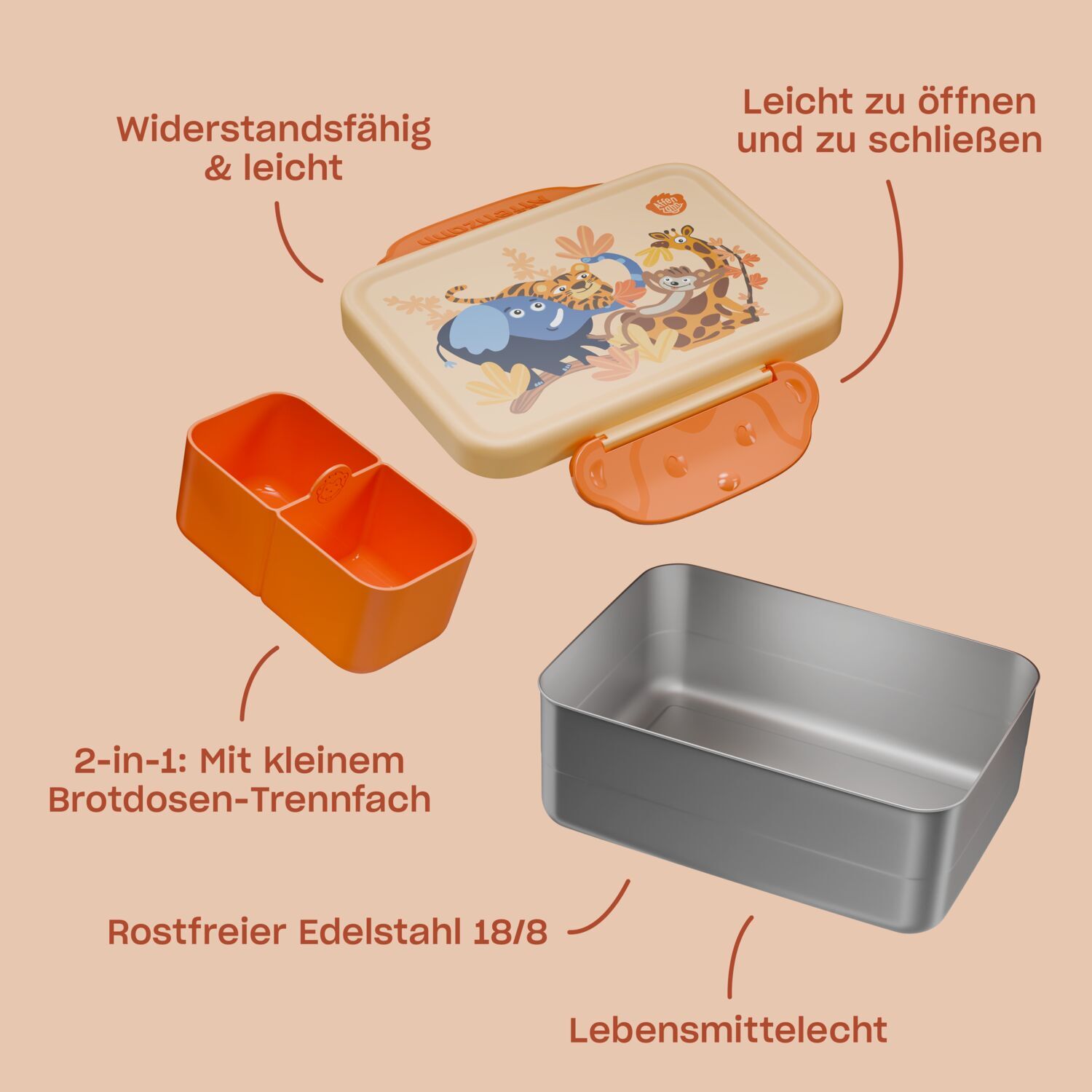 Produktinformationen "Affenzahn Edelstahl Brotdose, Sonnige Savanne"