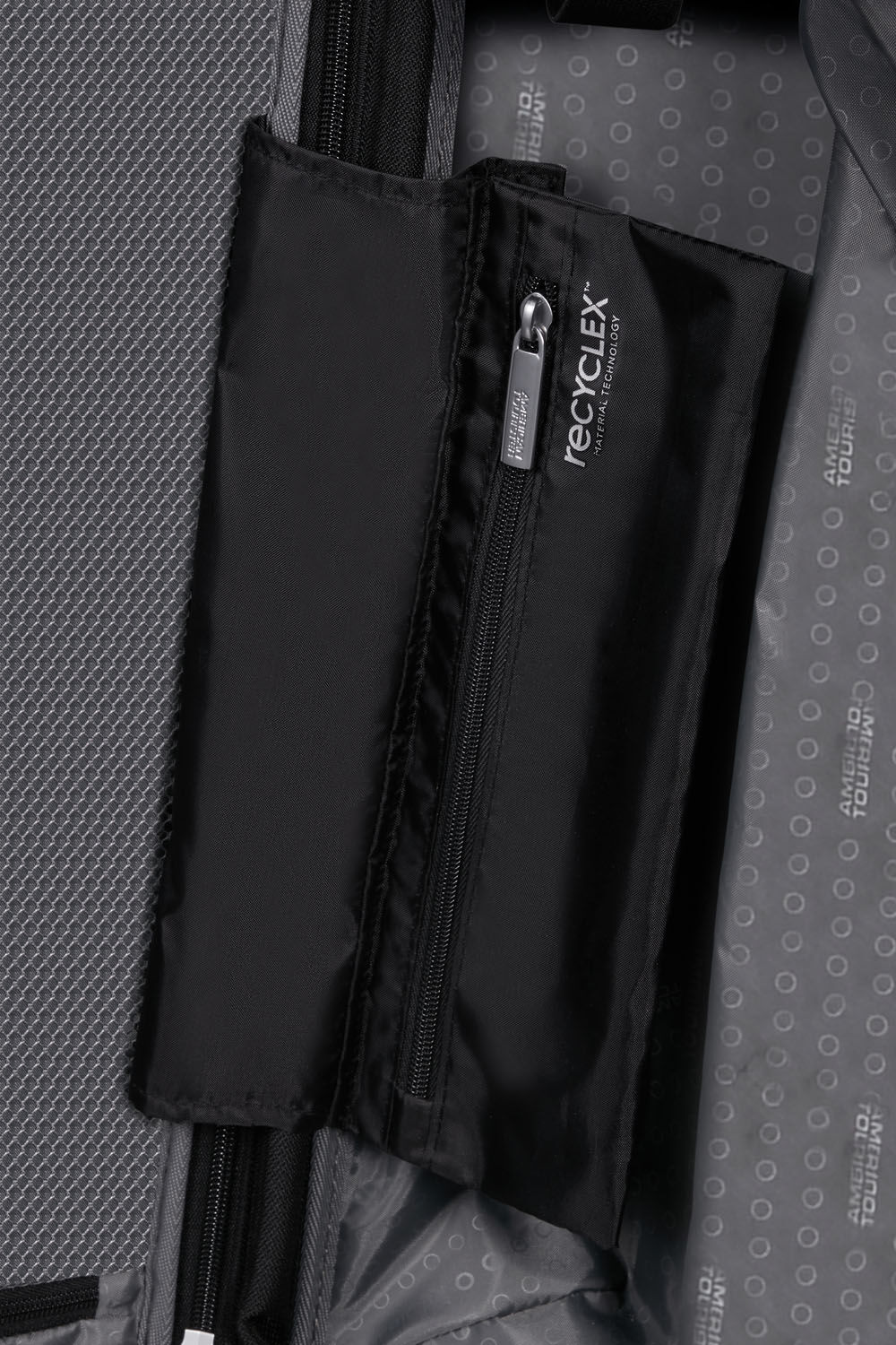 Innenraum, Dehnfalte und Reißverschlüsse sind aus rPet Polyester und mit 18 recycelten PET-Flaschen unter Verwendung der Recyclex™ Materialtechnologie hergestellt