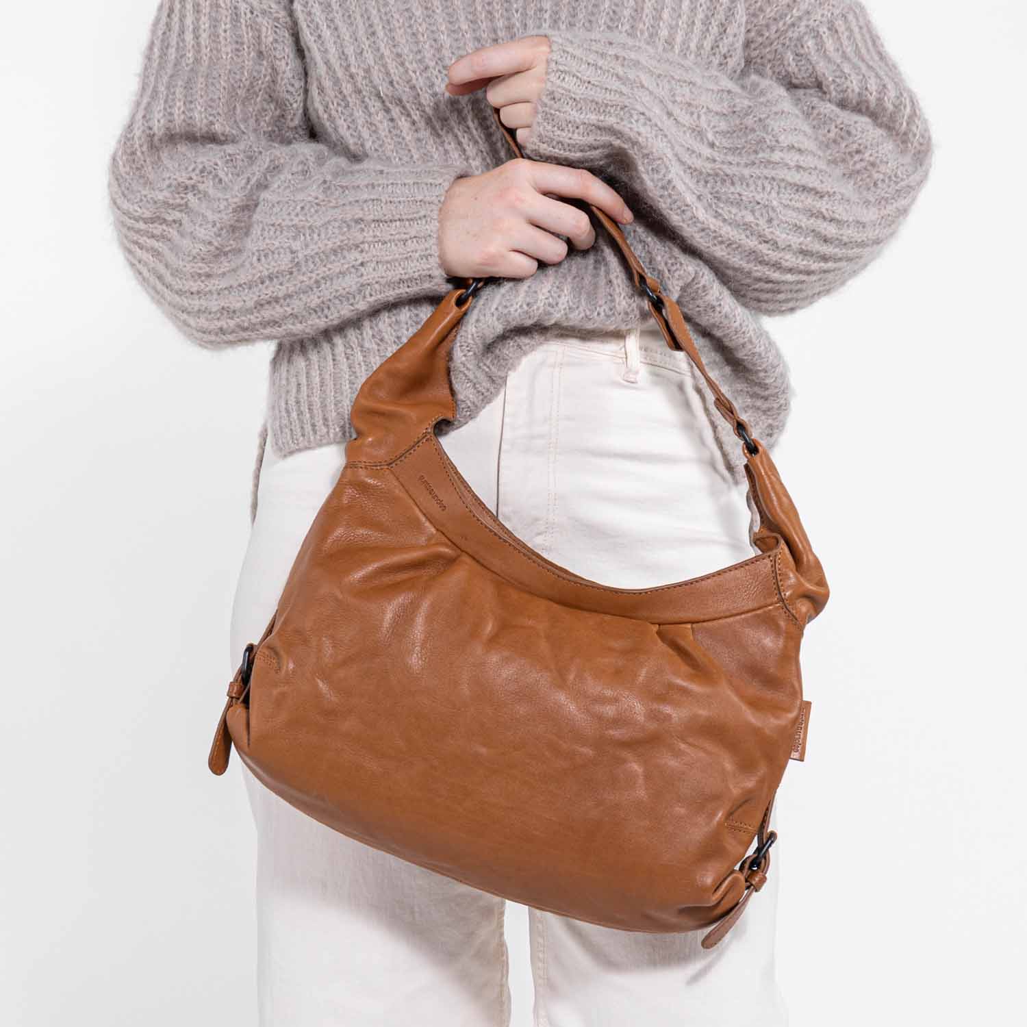 Für alle, die es schlicht lieben! Die knautschige Hobo Bag mit Namen Mrs. Berry Roll schmiegt sich beim Tragen weich an deine Seite und lässt sich dank des variablen Gurtes lässig crossbody oder modisch über der Schulter tragen.