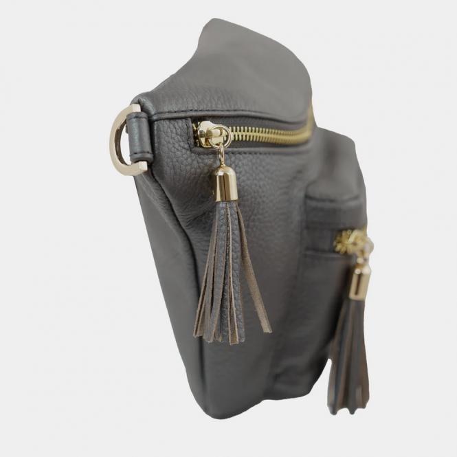 Die ALESSIA Cross-Body-Bag aus weichem, genarbtem Leder in Metallic-Optik ist in trendigen Pastellfarben und klassischen Basisfarben erhältlich. Goldene Akzente und die femininen Lederquasten verleihen ihr eine edle Note. Die Tasche vereint sportliche Eleganz und praktische Funktionalität – der ideale Begleiter für moderne Frauen im Alltag oder auf Reisen.