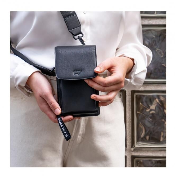 Mit der CAPRI Umhängetasche XS hält man den idealen Begleiter für den Tag in den Händen. Sie vereint Funktionalität und Stil in einem Produkt. Ihr feinnarbiges Rindleder und die schicken Reißverschlüsse mit BRAUN BÜFFEL-Schriftzug machen sie zum modischen Hingucker. Im Innern bietet sie genügend Platz für alle gängigen Handymodelle und schützt diese optimal vor Stürzen. Dank des bequemen, verstellbaren und abnehmbaren Tragegurts lässt sie sich individuell anpassen. Der Überschlag mit Magnetknopf sorgt für zusätzlichen Schutz und Halt. Auf der Rückseite finden sich praktische Kartenfächer für die täglichen Begleiter. Mit der CAPRI Umhängetasche XS in schwarz hat man alles Wichtige stets griffbereit.