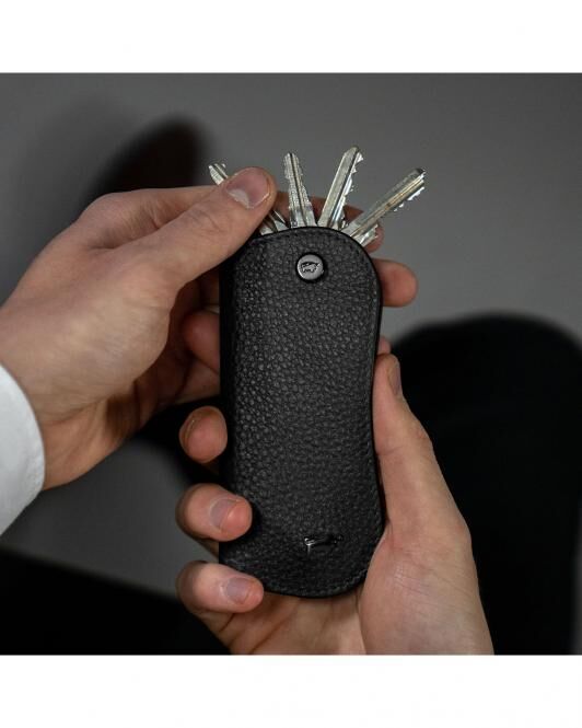 Das THEO Schlüsseletui ist der ideale Begleiter, um Ihre Schlüssel organisiert und sicher zu halten. Hergestellt aus erstklassigem genarbtem Rindleder, überzeugt es durch Robustheit und Langlebigkeit. Mit seinem modernen und eleganten Design fügt es sich nahtlos in den Arbeitsalltag ein und verleiht jedem Outfit eine maskuline Eleganz. Es ist nicht nur für geschäftliche Anlässe, sondern auch für den privaten Bereich geeignet. Die hochwertige Verarbeitung und das edle Material machen dieses Schlüsseletui zu einem zuverlässigen Helfer im anspruchsvollen Alltag. Es ist der ideale Begleiter für den modernen Mann, ob im Büro, auf Geschäftsreisen oder in der Freizeit.