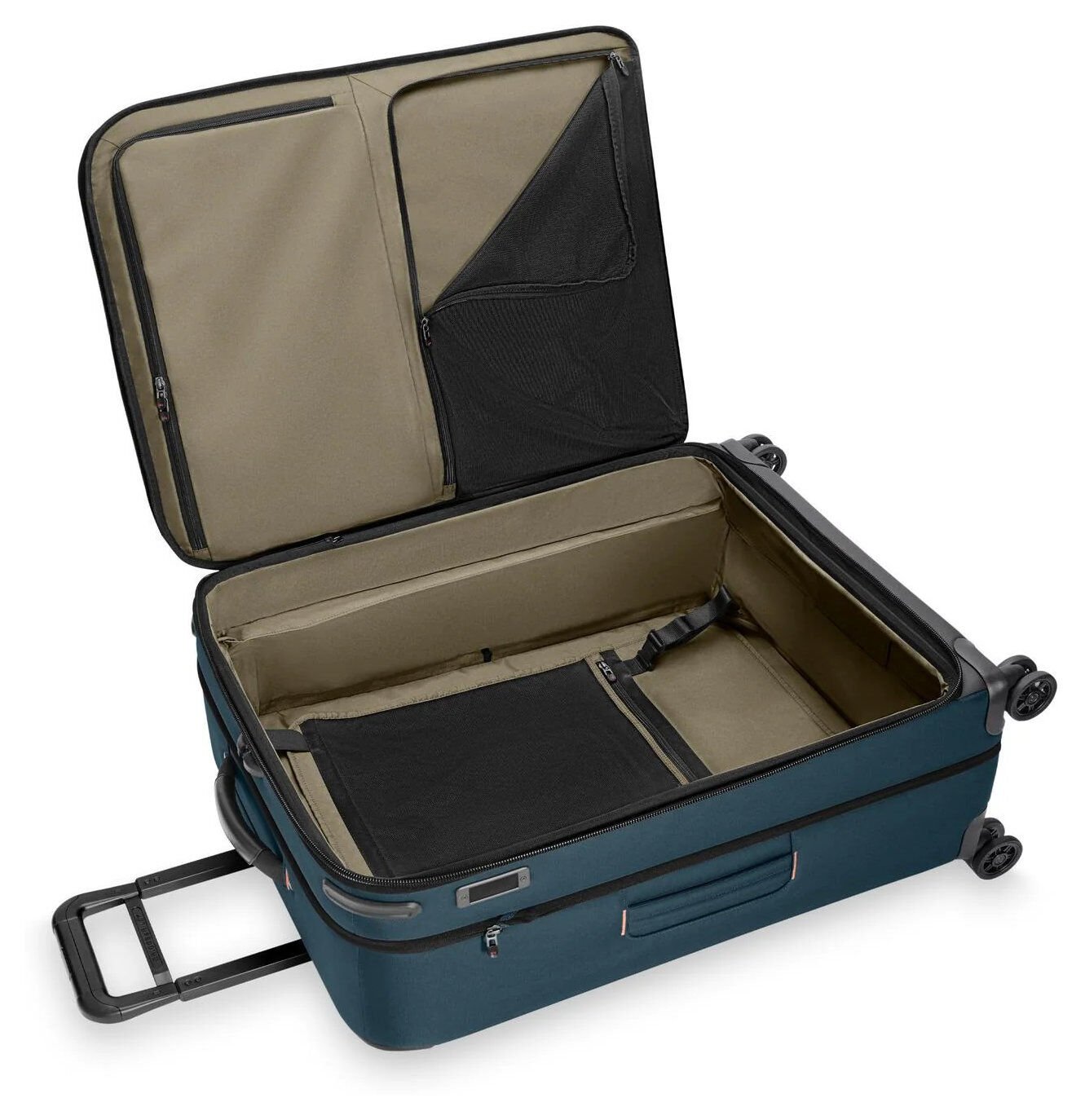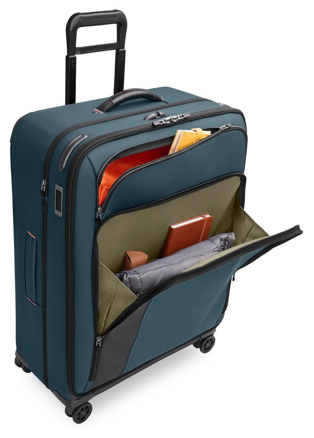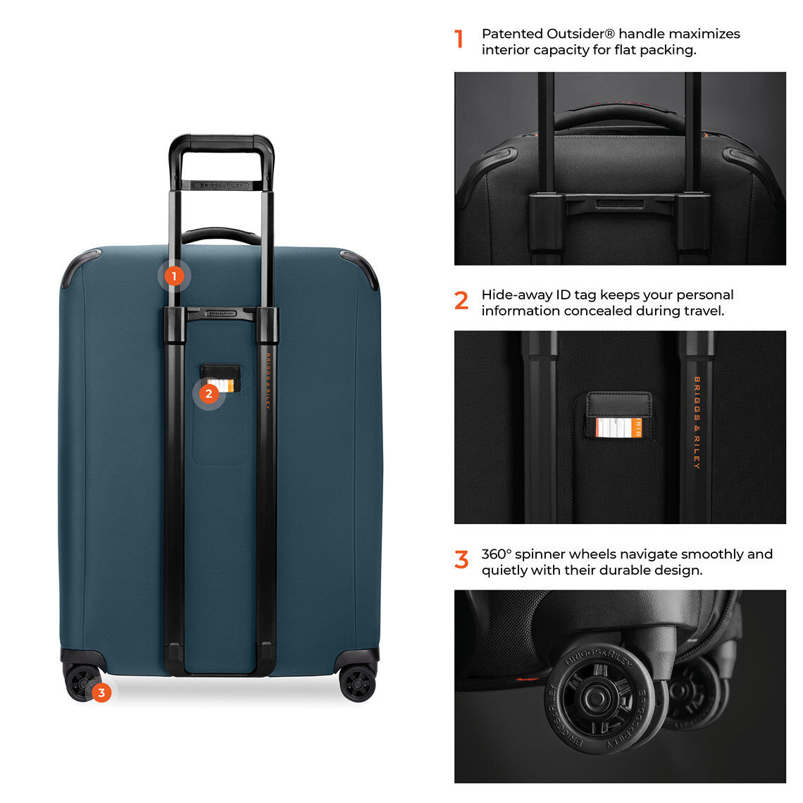 - Der patentierte Outsider®-Griff maximiert das Innenvolumen und sorgt für eine ebene Packfläche zur Minimierung von Knitterfalten.