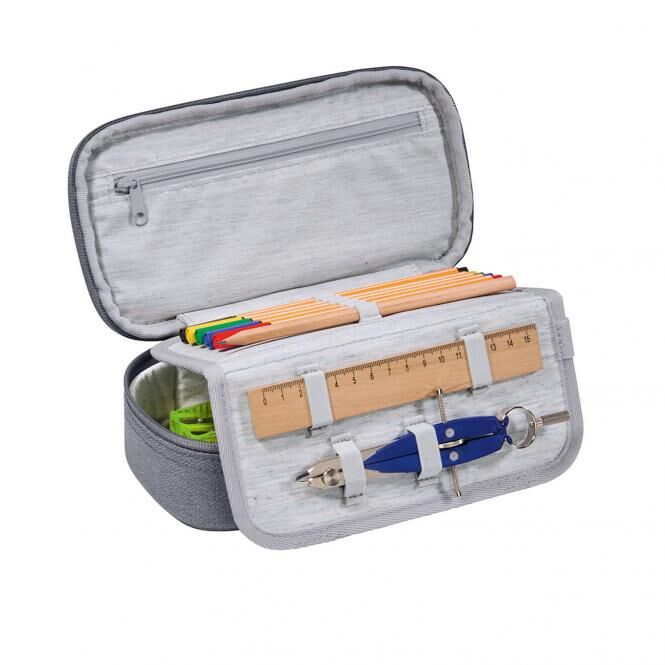 Alles andere als „schlampig“: Im Schulmäppchen geht so schnell nichts mehr verloren – Stifteorganizer und extra Fächer für Stundenplan, Geodreieck und Zirkel halten alles aufgeräumt an seinem Platz. In den Stiftschlaufen im Inneneinteiler sind die wichtigsten Stifte von Füller bis Bleistift sofort griffbereit. Im Stundenplanfach hat dein Kind direkten Überblick, was als nächstes kommt. Das große Hauptfach bietet genügend Platz für Spitzer, Schere, Klebestift und Lineale, kleinere Utensilien wie Tintenpatronen oder Kleingeld sind im Reißverschlussfach sicher aufgehoben. So ist dein Kind perfekt ausgestattet - ob für Schulaufsätze oder den Kunstunterricht.
