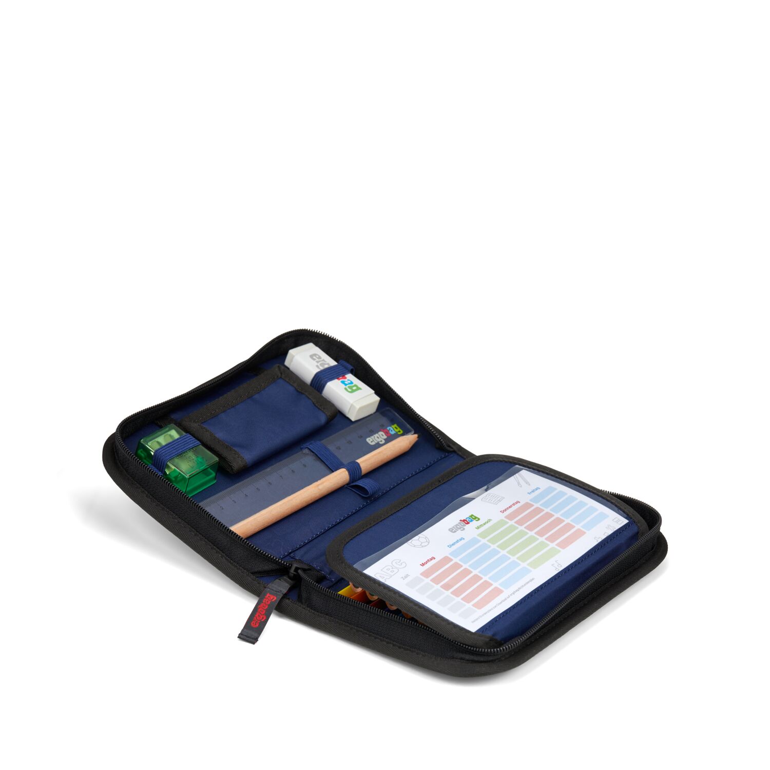4. Federmäppchen Bestens ausgestattet (22-tlg.), finden neben 17 Stiften in Reih und Glied auch Radiergummi, Lineal, Spitzer und Stundenplan ihren Platz.