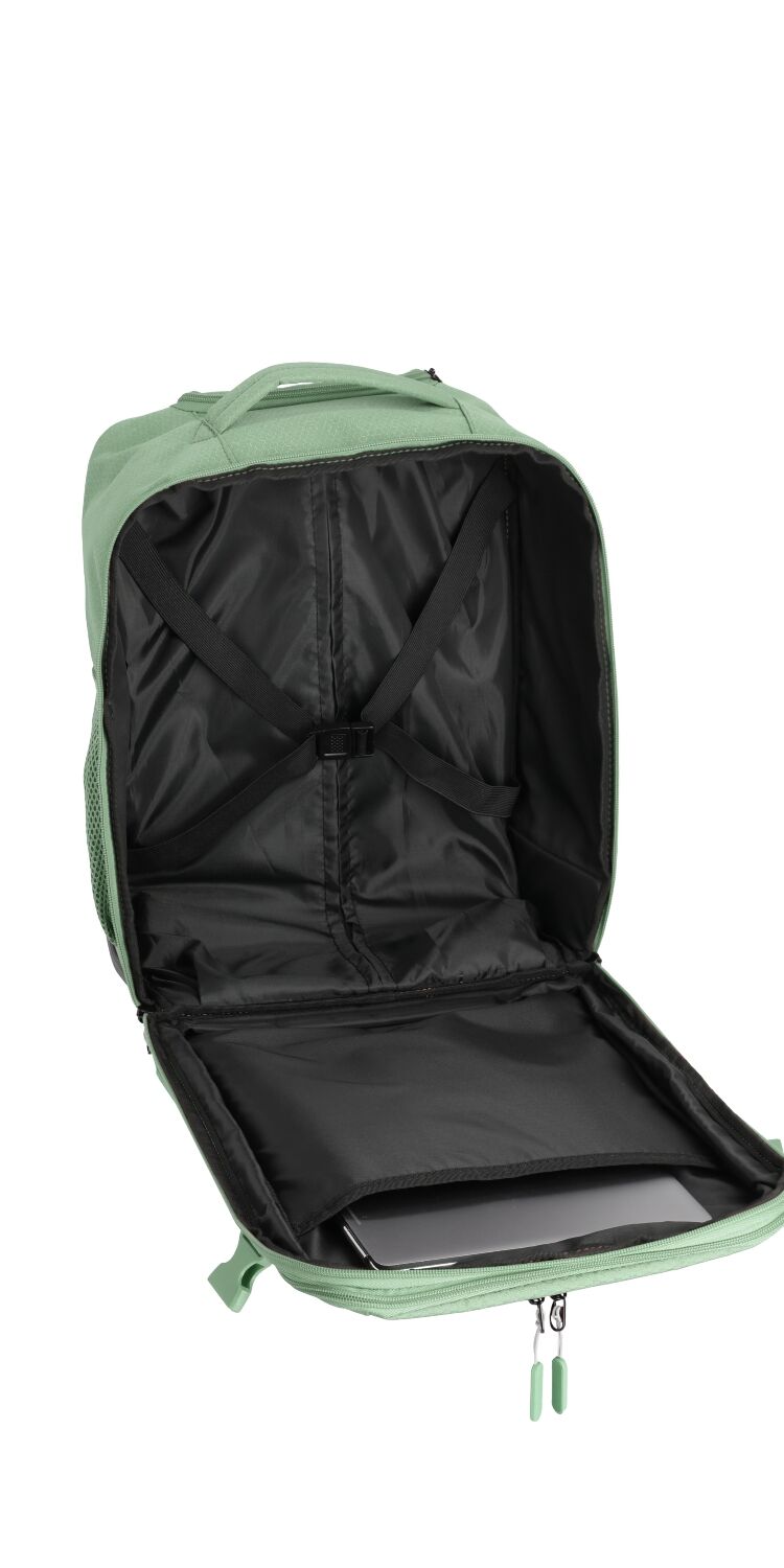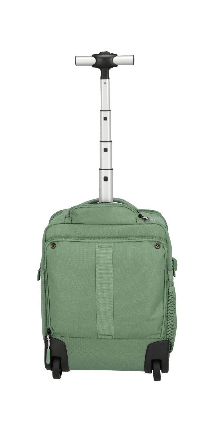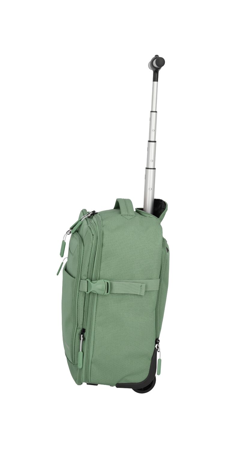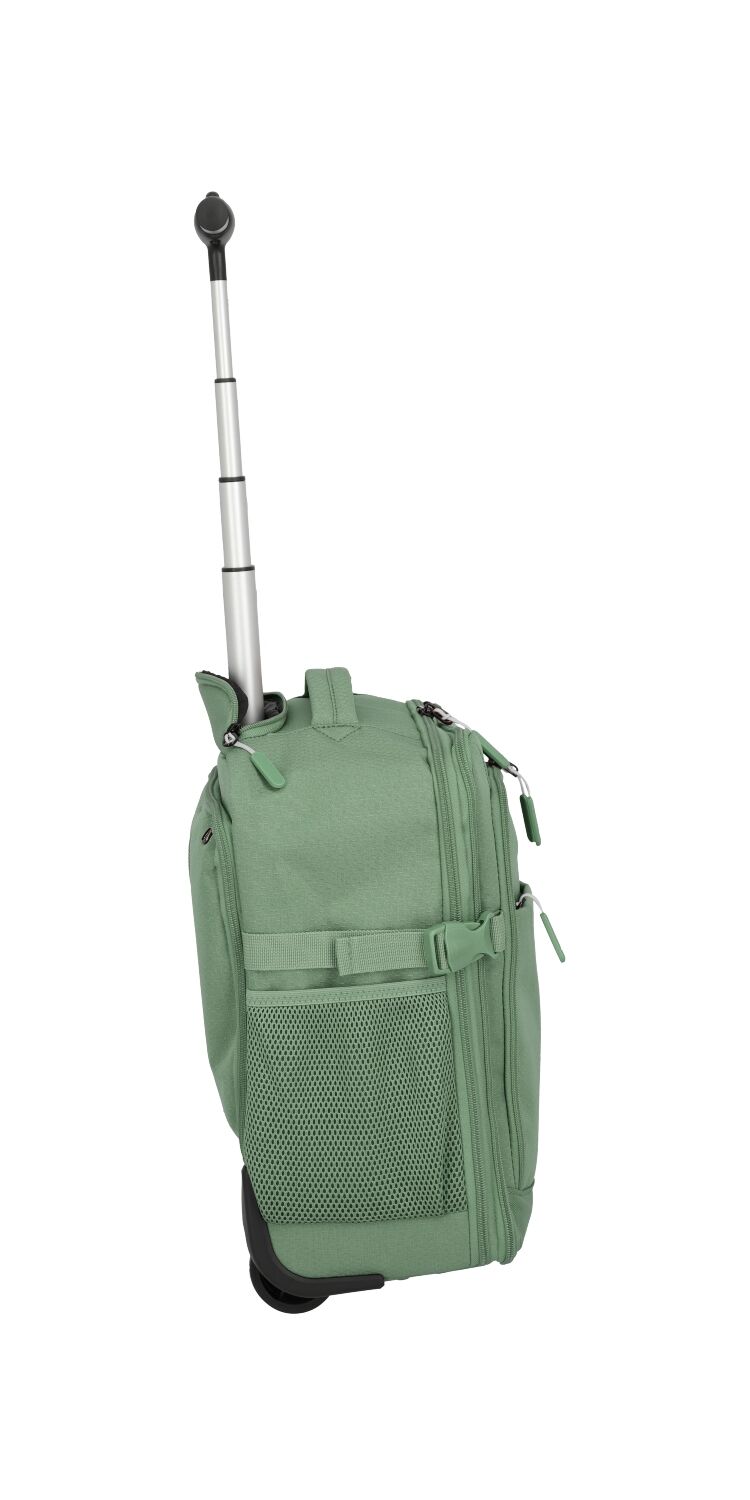 Durch das praktische Teleskopgestänge und die Rollen kann der Rucksack auch gezogen werden und eignet sich perfekt für das tägliche Leben oder Flugreisen.