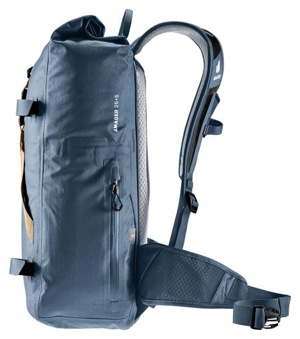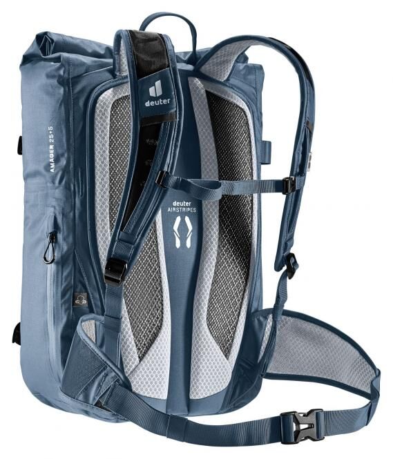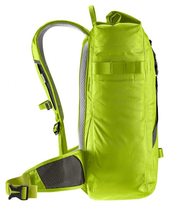 Der Großstadtdschungel fordert Gleichgewicht und ist schweißtreibend zugleich. Da muss der Lastenschwerpunkt des wasserdichten Rucksacks körpernah und die Luftzirkulation maximal sein. Dafür sorgen das komfortable Airstripes Tragesystem mit reduzierter Rückenauflage, das luftdurchlässige Air Spacer Mesh, die ergonomisch geformten, perforierten Schulterträger und Hüftflossen und der verstellbare Brustgurt. Im Inneren lassen sich dank Volumenerweiterung neben Arbeitsunterlagen auch Wechselklamotten für einen Aperitivo nach der Arbeit verstauen.