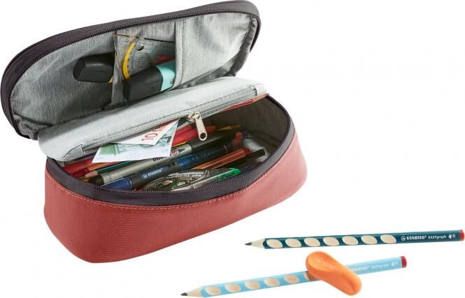 Das praktische Federmäppchen in vielen bunten Farben bietet Platz für alles was du an deinem Schultag so brauchst! Größere Gegenstände wie Bleistifte, Filzmalstifte, Füller und Spitzer kannst du im geräumigen Haupfach unterbringen, Radiergummi, Geo-Dreieck und andere sperrigere Dinge, finden im Reisverschlussfach platz und in den Steckfächern kannst du Zirkel und Tipp-Ex verstauen. Praktisch und zudem auch noch nachhaltig: das bluesign Product aus 100 % recyceltem Hauptmaterial ist zudem mit dem Grünen Knopf zertifiziert und PFC-frei.