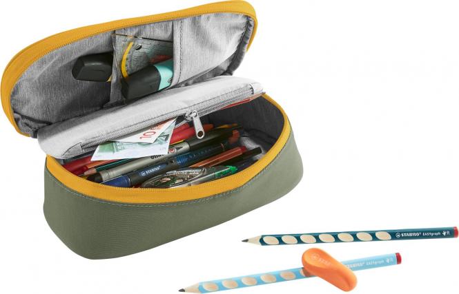 Das praktische Federmäppchen in vielen bunten Farben bietet Platz für alles was du an deinem Schultag so brauchst! Größere Gegenstände wie Bleistifte, Filzmalstifte, Füller und Spitzer kannst du im geräumigen Haupfach unterbringen, Radiergummi, Geo-Dreieck und andere sperrigere Dinge, finden im Reisverschlussfach platz und in den Steckfächern kannst du Zirkel und Tipp-Ex verstauen. Praktisch und zudem auch noch nachhaltig: das bluesign Product aus 100 % recyceltem Hauptmaterial ist zudem mit dem Grünen Knopf zertifiziert und PFC-frei.