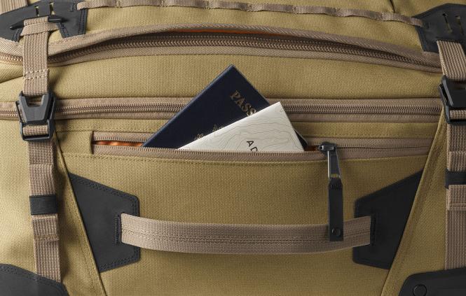 - Von außen zugängliches, wasserdichtes Fach zum Schutz von nassen oder undichten Gegenständen.