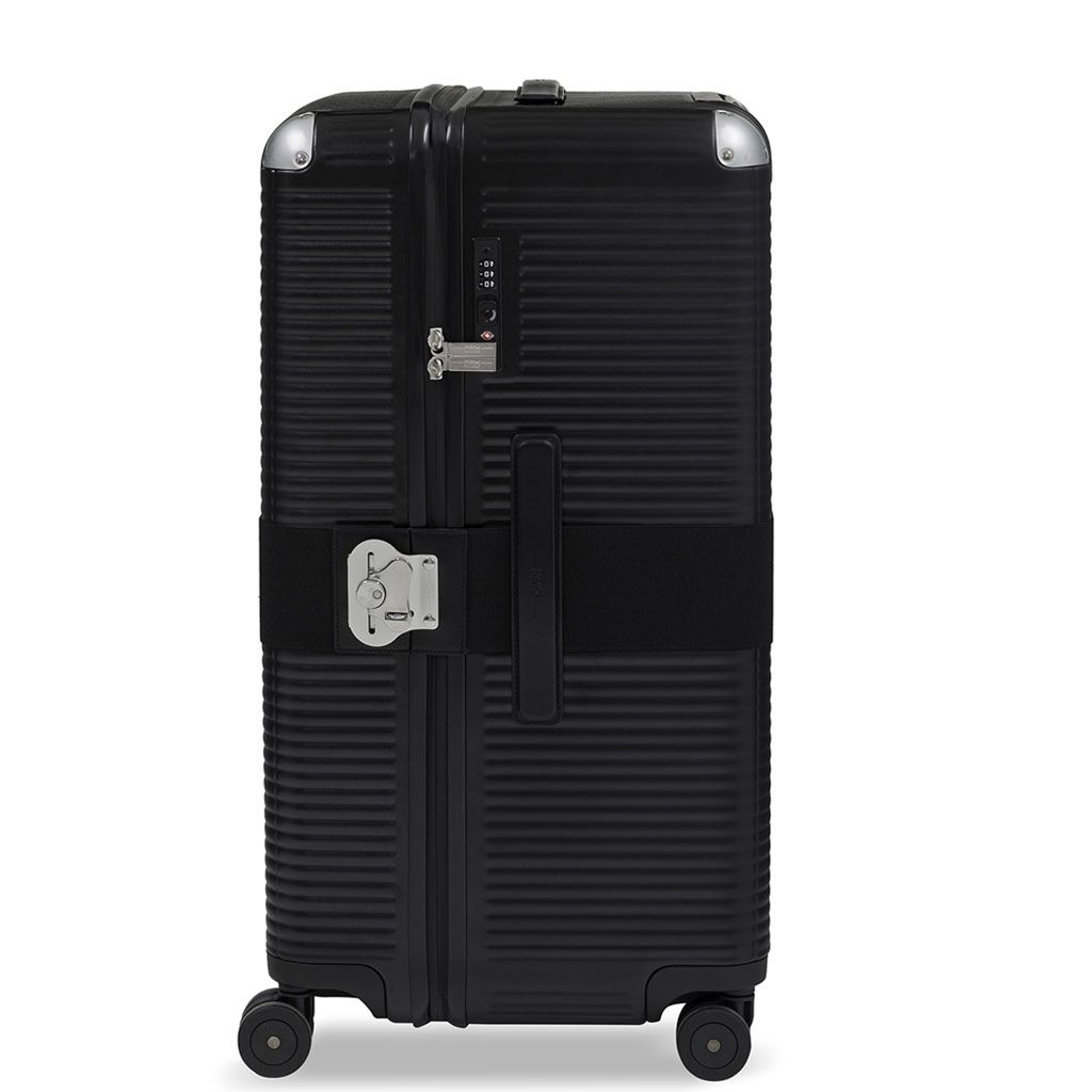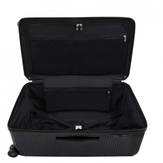 100% Makrolon©-Polycarbonat. Der Koffer ist von alten Truhen inspiriert, die in einer modernen Tonart wieder aufgegriffen werden. Ausgestattet mit einem integrierten TSA-Vorhängeschloss ist es ideal für kosmopolitische Reisende in die Vereinigten Staaten und einem wasserdichten Reißverschluss. Das Gummiband ist im Lieferumfang enthalten und wird mit dem ikonischen Schmetterlingsschloss geschlossen. Die beiden Griffe sind aus feinem italienischen Leder gefertigt und mit dem Logo des FPM Milano verziert. Das Innere ist komplett mit elastischen Bändern und Nickelclips auf einer Seite und einer großen Tasche mit Reißverschluss, die es Ihnen ermöglicht, den Inhalt zu organisieren. ideal für Reisen bis zu 16 Tagen.
