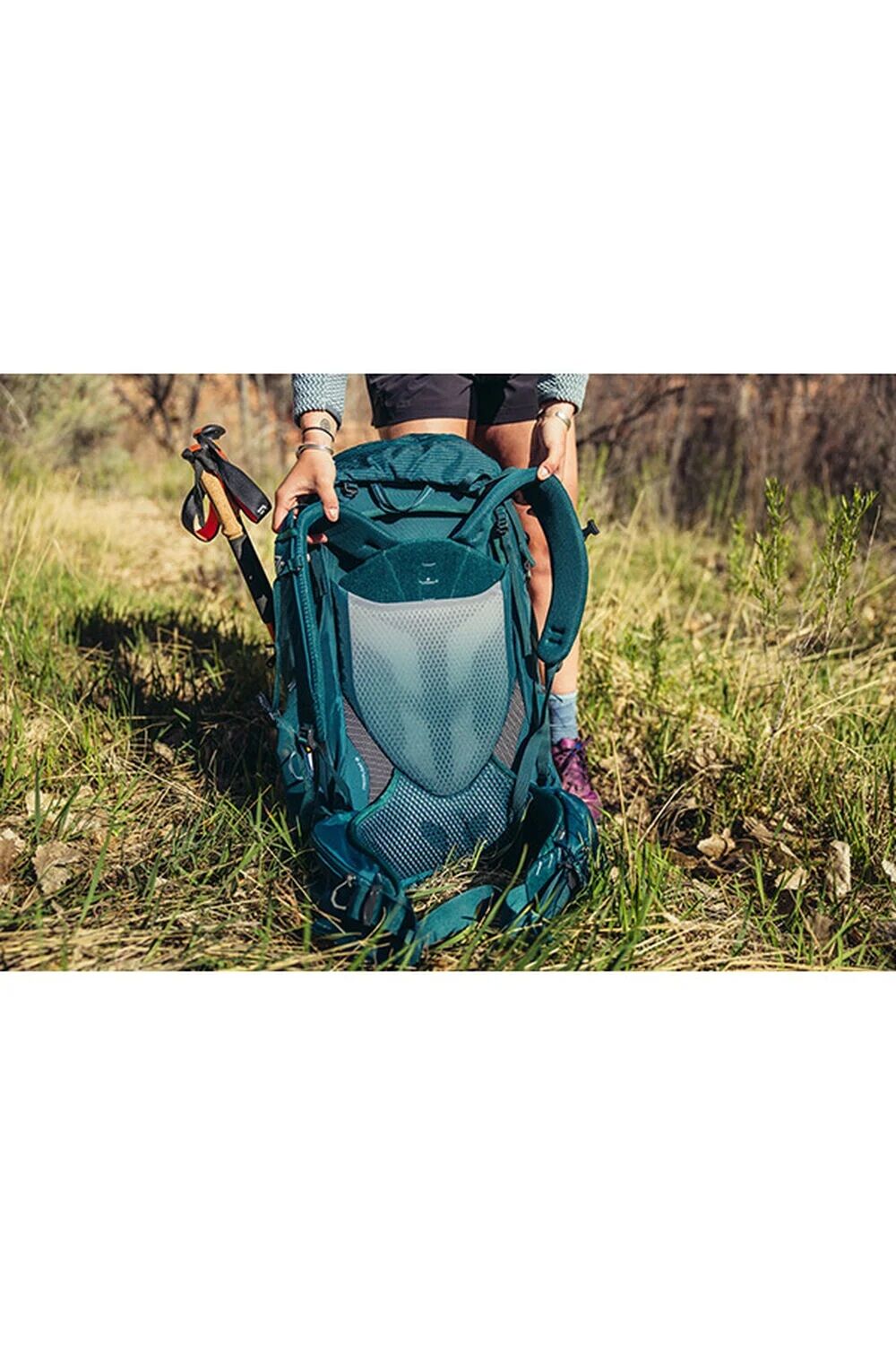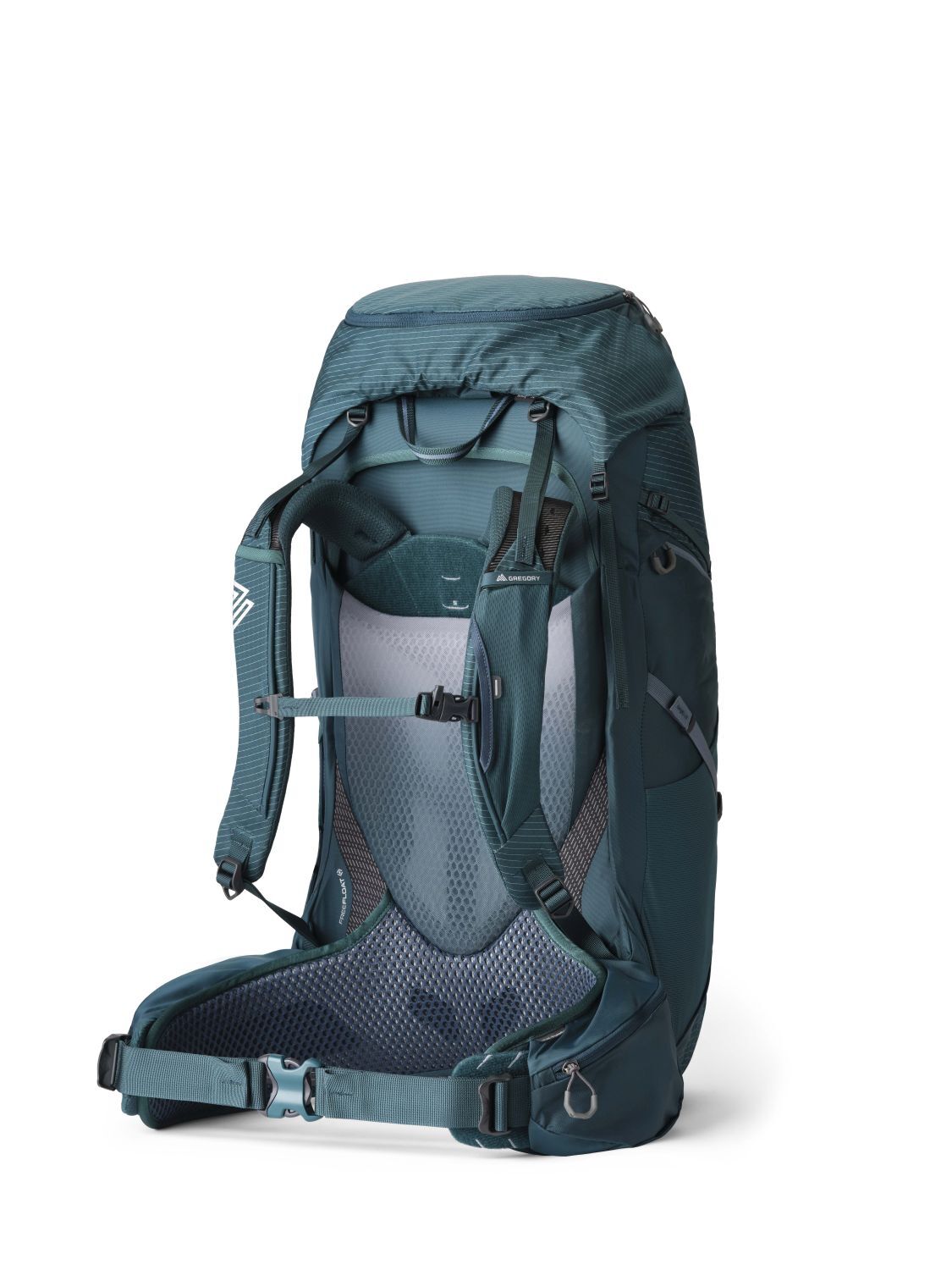 Hybrid-Tragesystem mit dem dynamischen FreeFloat-Hüftgurt von Gregory und Rückenteil aus AirCushion-Mesh.