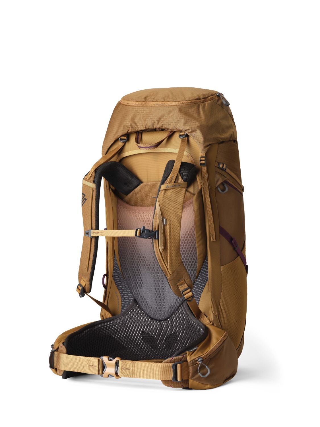 Hybrid-Tragesystem mit dem dynamischen FreeFloat-Hüftgurt von Gregory und Rückenteil aus AirCushion-Mesh.