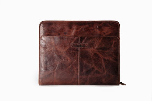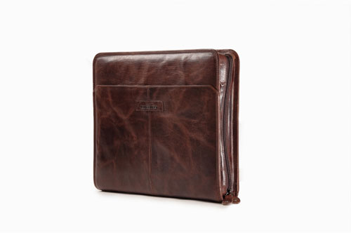 Schlanke, schlichte und leichte Ringbuchmappe in A4 Größe. Das klassisch-lebendige Leder, der gerade Schnitt der Mappe und die dekorative Sattlernaht erzeugen einen Ausdruck von Nostalgie und Modernität. Die Mappe eignet sich für die Arbeit sehr gut und durch den Reißverschluss wird der Inhalt selbst bei schlechtem Wetter gut geschützt. Das gewachste Leder bekommt im Gebrauch eine dezente Patina.