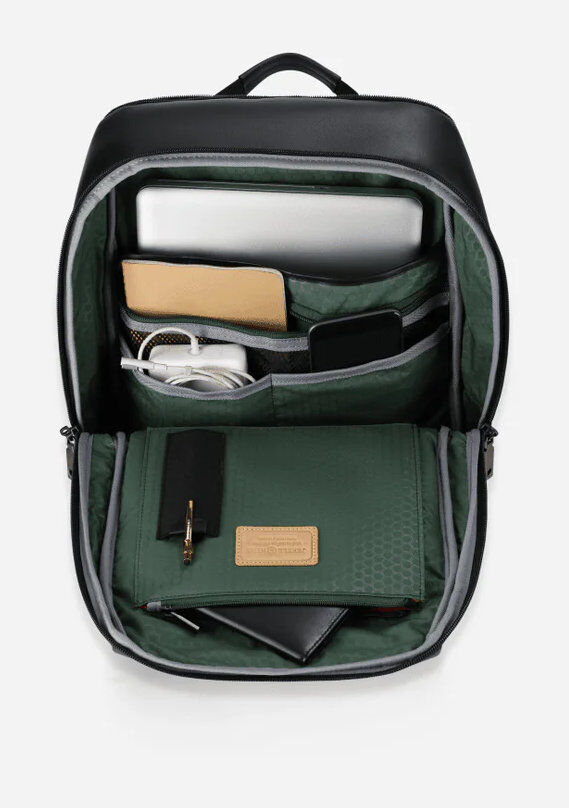 Eleganter Laptop Rucksack aus Leder mit minimalistischem Design und durchdachter Organisation. Im Inneren sorgen spezielle Fächer dafür, dass Laptop, Tablet und Arbeitsutensilien sicher verstaut und jederzeit griffbereit sind. Ideal für Pendler, Geschäftsreisen und den Arbeitsalltag.