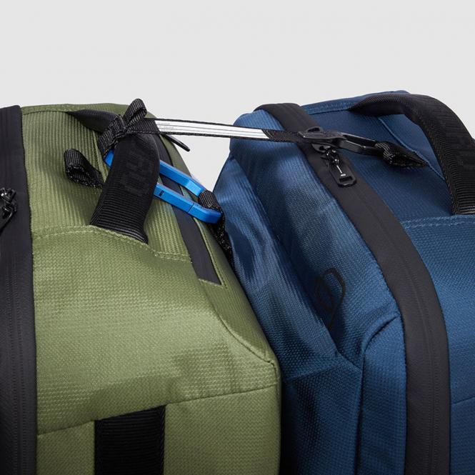 Die Corner 2.0-Serie besteht zu 100 % aus recyceltem Nylon. Die Details bestehen aus 100% recyceltem, aus PET-Flaschen wiedergewonnenem Polyester. Die Ecken werden aus biobasiertem TPU gefertigt.
