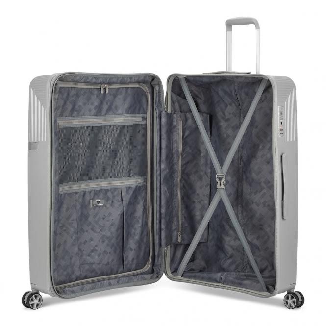 Die Kollektion AirGlam besticht durch ihre Eleganz und Raffinesse. Es besteht aus erweiterbaren Trolleys mit vier Rollen in verschiedenen Größen und wird aus verschleißfesten, stoßfesten, wasser- und temperaturbeständigen Materialien hergestellt. Die Rollen der Trolleys sind doppelt und in die Schalen integriert, um Stabilität und Aufprallschutz auf jedem Untergrund zu gewährleisten. Der Innenraum ist mit Riemen ausgestattet, um die Kleidung zu befestigen, sowie mit Taschen für kleine Gegenstände und Reißverschlussfächern, um eine bessere Ordnung im Trolley zu schaffen und alles unterzubringen, was Sie auf Ihren Reisen benötigen. Die Trolleys sind mit einem Sicherheitsreißverschluss und einem festen TSA-Dreifach-Kombinationsvorhängeschloss für den US-Reiseverkehr ausgestattet. Darüber hinaus wurde es mit einem erweiterbaren System ausgestattet, um den Innenraum zu vergrößern. Der Stil von AirGlam ist elegant und raffiniert, unterstrichen durch metallisierte Oberflächen.