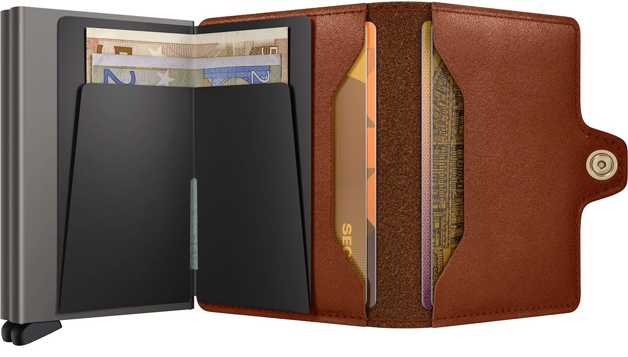 Zusammen mit seinem stabilen Verschluss und seiner Außenseite für zusätzliche Karten, Banknoten und Quittungen bietet das Twinwallet viel Platz, bleibt aber kompakt.