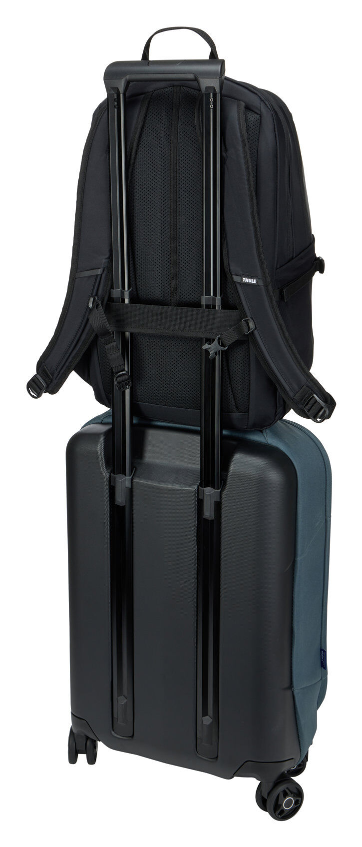- Mit der Trolleybefestigung können Sie den Rucksack am Trolley aufsetzen, um einfacher zu reisen